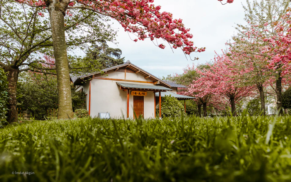 - Sakura Ağaçları: Japonya’nın simgesi olan kiraz çiçekleri (sakura), özellikle Nisan ayında bahçeyi pembe ve beyaz renklere bürüyerek büyüleyici bir manzara sunar.
